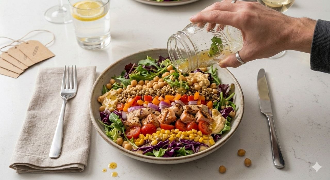 Diferente da maioria dos métodos que focam em dietas restritivas ou em cozinhar todos os dias, este guia ensina um sistema simples de organização semanal. Com o Protocolo 30 Minutos, você prepara a base das suas refeições uma única vez e garante saladas completas e equilibradas prontas para a semana inteira. Menos decisões, mais praticidade e uma alimentação saudável que realmente cabe na sua rotina.