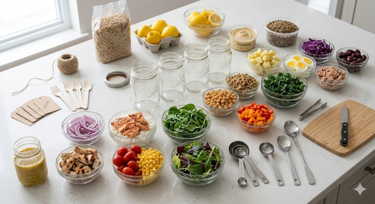 • Monta ou separa as saladas da semana